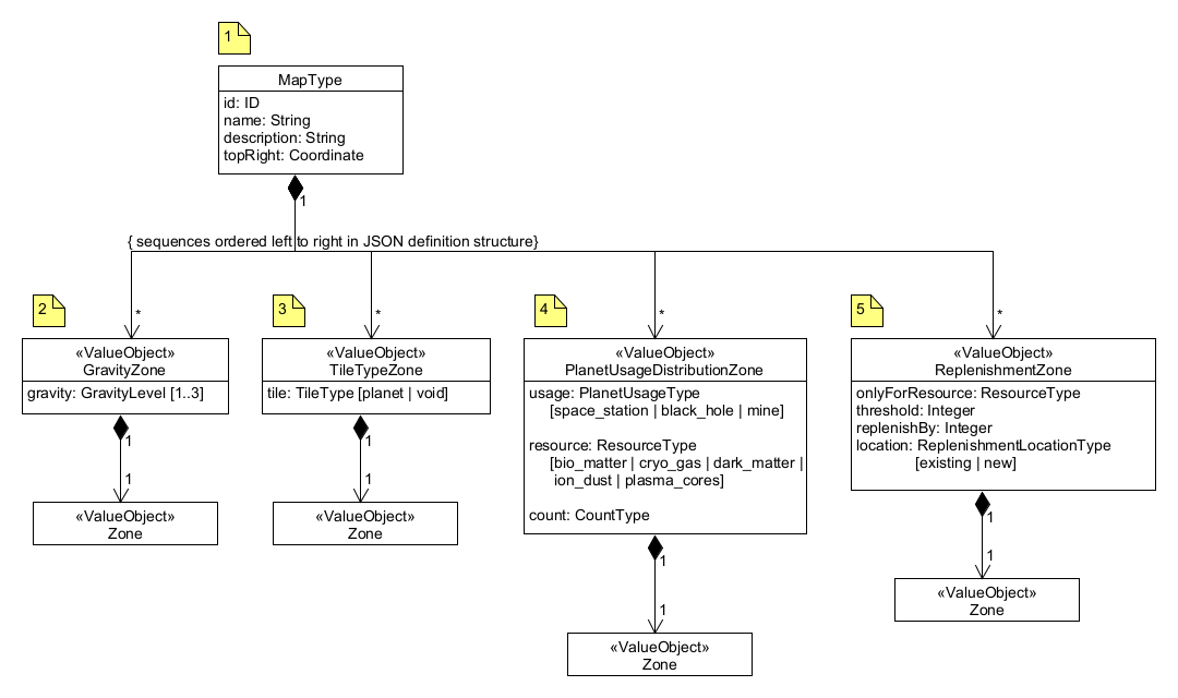 The first thing to be defined for a map are the gravity zones. This is an ordered list of the value objects as depicted below.