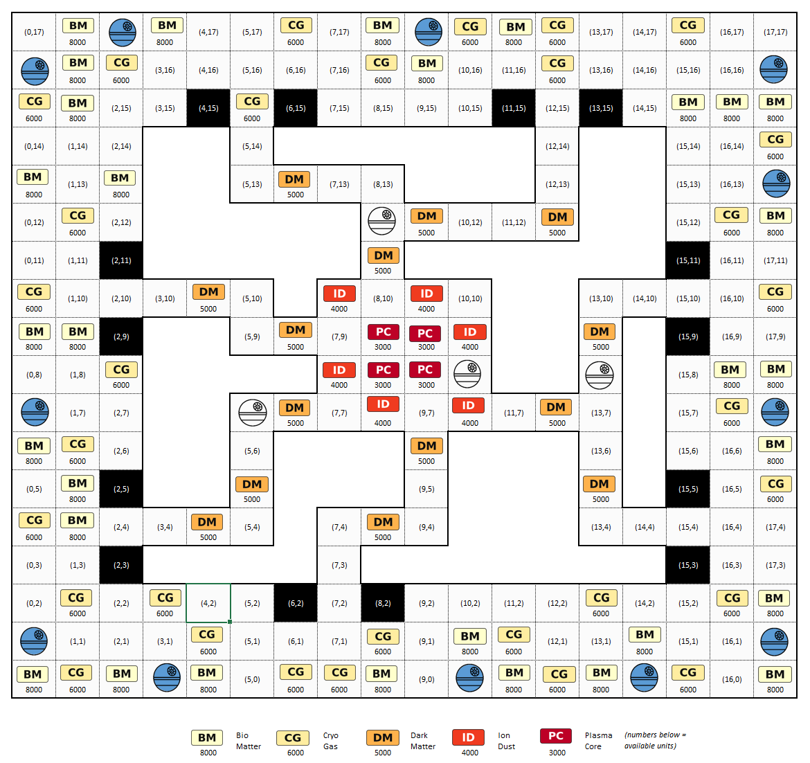 | Dark Matter | B (Ring 3-6) | empty_planets * 0.333 | 14 | 5000 dm |