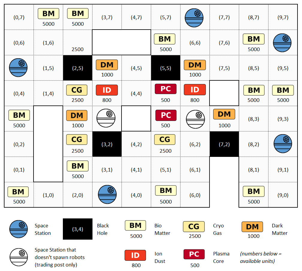 | 1 | Space Station (spawning) | A (outer ring) | 5 | 5 | |